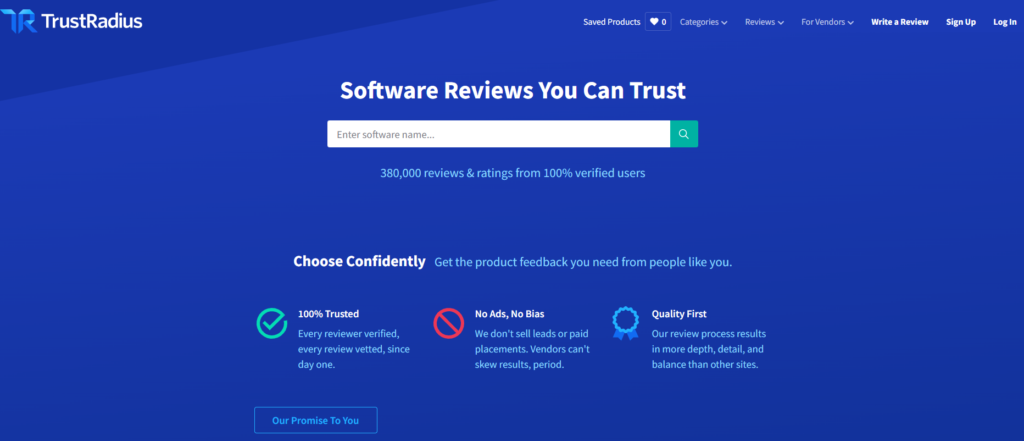 Trustradius er en anmeldelsesplatform, der hjælper købere med at træffe mere kvalificerede beslutninger. Se alle de detaljerede oplysninger, de giver på virksomhedsprofilerne ved at klikke her.