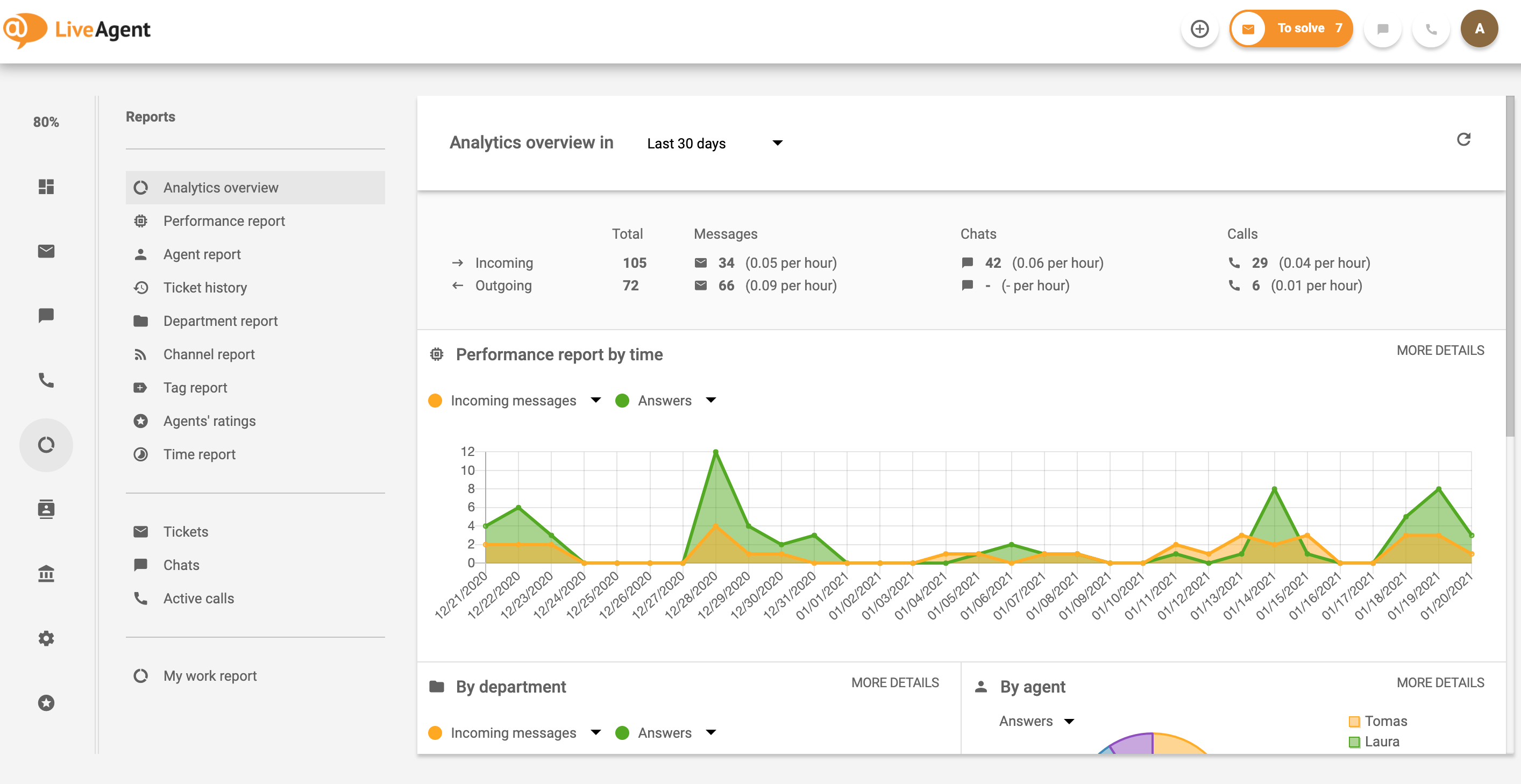 Realtidsanalyse giver detaljerede rapporter om svartider, hvilket fremhæver områder for potentielle forbedringer og sikrer overholdelse af serviceniveauaftaler (SLA’er). Ved at optimere svartider kan organisationer styrke [kundeservice](/customer-service-software/ ‘Discover the 10 best customer service software ranked by experts. Compare top tools like LiveAgent, Zendesk & Freshdesk to enhance support!””) og tilfredshed, hvilket i sidste ende fremmer loyalitet og fastholdelse.