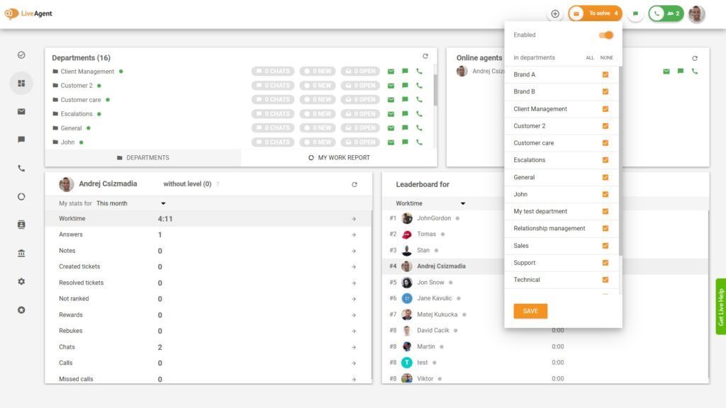 At løse knappen er en særlig LiveAgent-funktion, der giver medarbejdere besked om højt prioriterede billetter, der skal løses. De billetter, der vises i At løse knappen, har været ubesvarede i lang tid eller er knyttet til SLA’er (serviceniveauaftaler). I bund og grund, er det At løse knappen der sikrer, at der ikke er nogen SLA’er der glemmes.