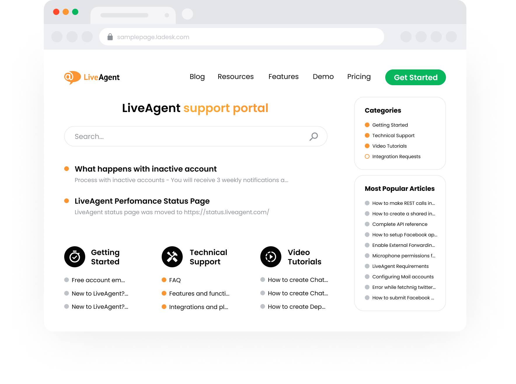 Hele pointen med at skabe en online vidensbase-softwareløsning er, at den skal være let søgbar. Men jo mere indhold din virksomhed laver, jo mere kan den blive kaotisk. Derfor giver LiveAgent dig mulighed for at oprette kategorier til dine kunder, og du vil ikke farer vild i indholdet. Opret forskellige kategorier for de mest almindelige emner, der skal besvares, og opdel læringsindhold, som det passer dig.