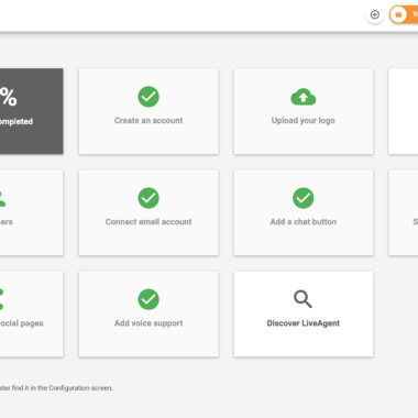 Det er nemt at komme i gang med LiveAgent; du kan blot bruge prøveperioden og få alle funktioner gratis i en vis periode. Det kræver ingen kreditkortoplysninger, så du kan bare tilmelde dig med din e-mailadresse og gå i gang. Når du har oprettet din konto, kan du begynde at blive fortrolig med LiveAgent-funktionerne takket være en enkel og effektiv startvejledning, der også fungerer som LiveAgents velkomstskærm.