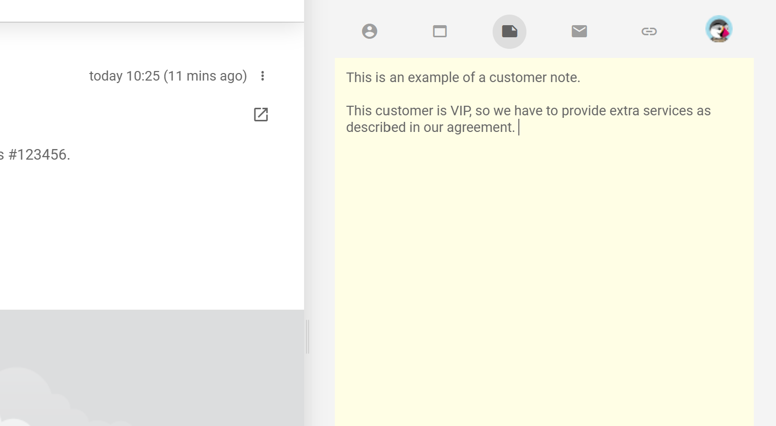 Ligledes kan du tilføje noter til både kundeoplysninger og separate kundebilletter. Denne funktion er meget nyttig for at dele vigtig information med dine agenter, uanset deres adgang til de andre CRM-funktioner. Du kan skrive alt, hvad du anser for vigtigt, og lægge noten der, så alle agenter kan se, når de kommer i kontakt med en bestemt kunde.