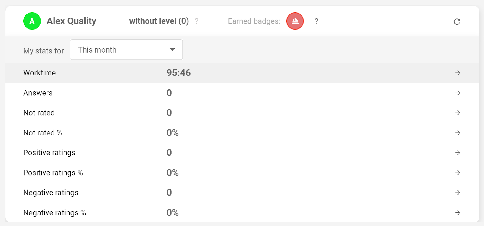 Alle statistikker, niveauer og badges er synlige i hver agents dashboard i nederste venstre hjørne af skærmen. Du kan også vælge at vise din statistik for en bestemt tidsperiode. Hvis du klikker på hvert element på listen, afsløres en rangliste med sammenligninger af agenternes præstationer. Du kan også opdatere denne tabel for at se de nyeste data om dine statistikker og præstationer.