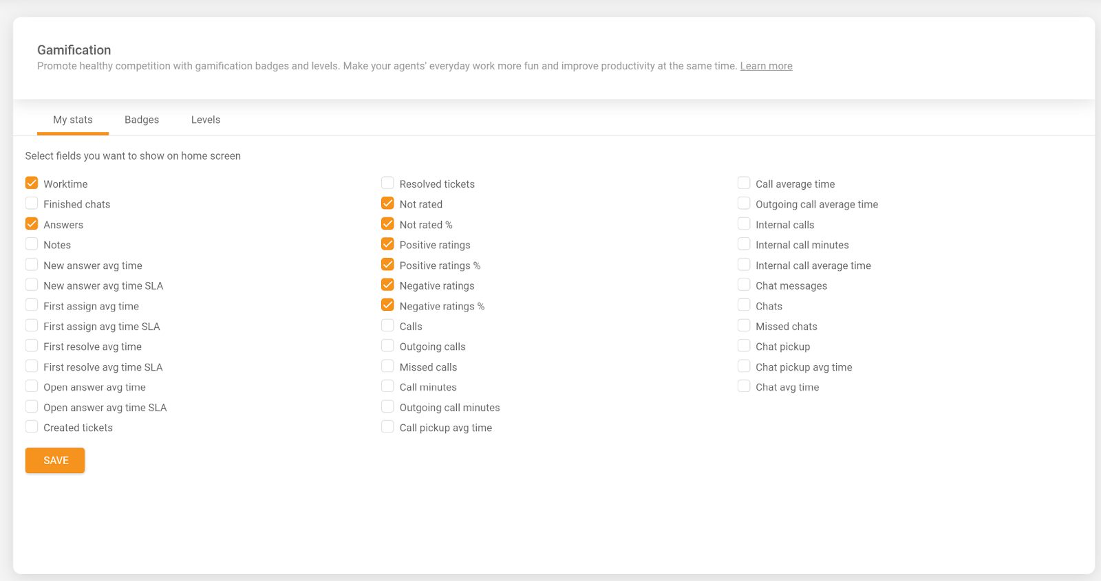 Dette kan øge konkurrenceevnen for agenter, der finder denne type motivation effektiv. På den anden side kan badges og niveauer skabe et miljø, hvor agenter kan trives, baseret på mindre konkurrencedygtige og positive former for opmuntring. Disse to funktioner gør det også nemmere for alle andre at se, hvem de bedste performere er.