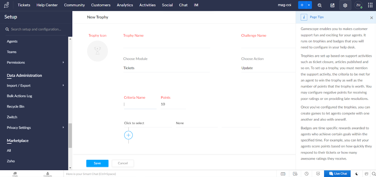 Gamification funktioner i Zoho Desk