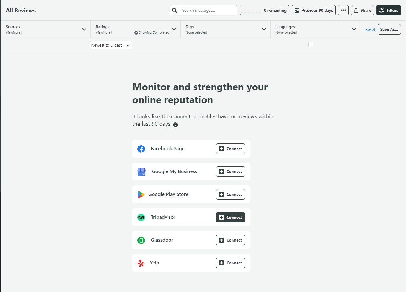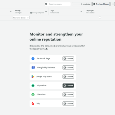 En anden funktion, der kan være nyttig for kunderelaterede teams, er Sprout Socials Reviews funktionalitet. Det lader dig forbinde forskellige anmeldelsesplatforme og administrere al din kundefeedback fra ét sted, så du ikke behøver at tjekke hver af dem separat.