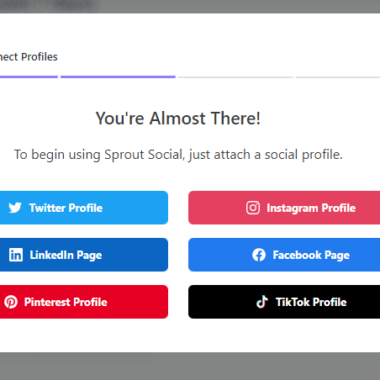 Derefter forventede jeg at se et dashboard eller en slags velkomstside. Til min overraskelse spildte Sprout Social ikke tiden og tilbød at forbinde mine sociale mediekonti med det samme.